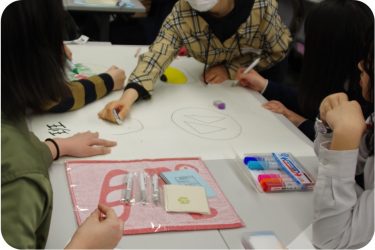 食べ物と食品の違いや5大栄養素、バランスの良い食事についてのお話の後、クロスワードパズルのようなゲームをしました。高校生たちは班の中で食品の名前をたくさん探し出して、楽しそうに協力していました。