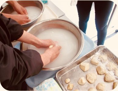 ←小麦粉からグルテンを取り出すところ