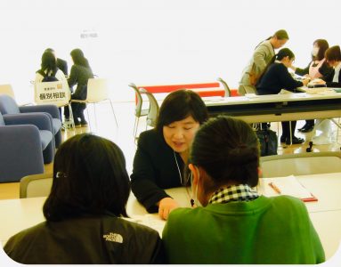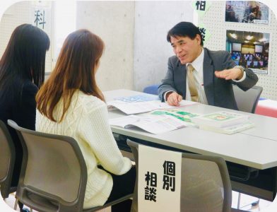 個人相談コーナーは医療保健学部 栄養学科の先生が生徒さんからの質問に答える形で行われました。「高校生活で特にしておくことは?」や「ぐんま未来大学での自家用車通学のこと、駐車場のこと」「AO入試の内容は?」などの多くの質問があり、それぞれの回答を得て安心して帰られました。