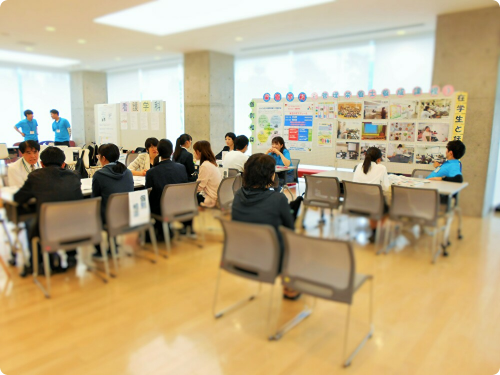 ←「個別相談」と「在学生と話そう!」のコーナー。 たくさんの高校生に参加していただきました。