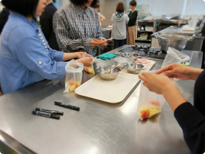 次に、島田先生の模擬講義「災害時の食事の対策を学ぼう!~日用品の活用から備蓄まで~」 でした。また、ミニ体験では模擬講義での内容を踏まえて災害時にできるパッククッキングを行いました!皆さん今日学んだことを是非活かして災害に備えましょう。