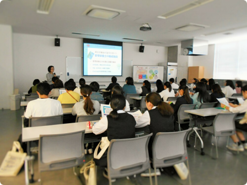 平成ホールでの大学紹介の後、医療保健学部 栄養学科のある11号館で学科説明が行われました。