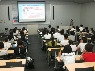 大学紹介の後に、11号館で初回の参加者対象には学科説明を、2回以上参加いただいた高校生には別所で大学説明が行われました。