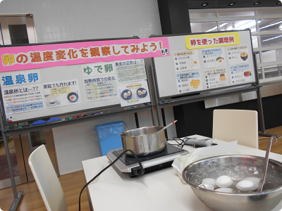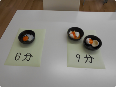 「卵の温度変化を観察してみよう!」では、白身と黄身が加熱温度と時間によってどのように変化していくのかを観察することができました。