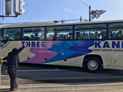 引率の先生方も乗りこんで、さぁ出発です!