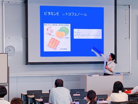 9日 榮昭博教授による模擬授業「ビタミンの欠乏症と過剰症~大切なビタミンですが、欠乏したり過剰に摂ると大変なことになります!~」
