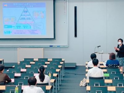 両日とも初めに、宮原公子学科長による学科説明と、野沢弘子助教、斎藤陽子助教による卒業後の進路説明を聞いていただきました。オープンキャンパスへ2回以上ご参加いただいている高校生には、医療保健学部 栄養学科教員と在学生に直接ご質問いただくなどの交流に参加していただきました。