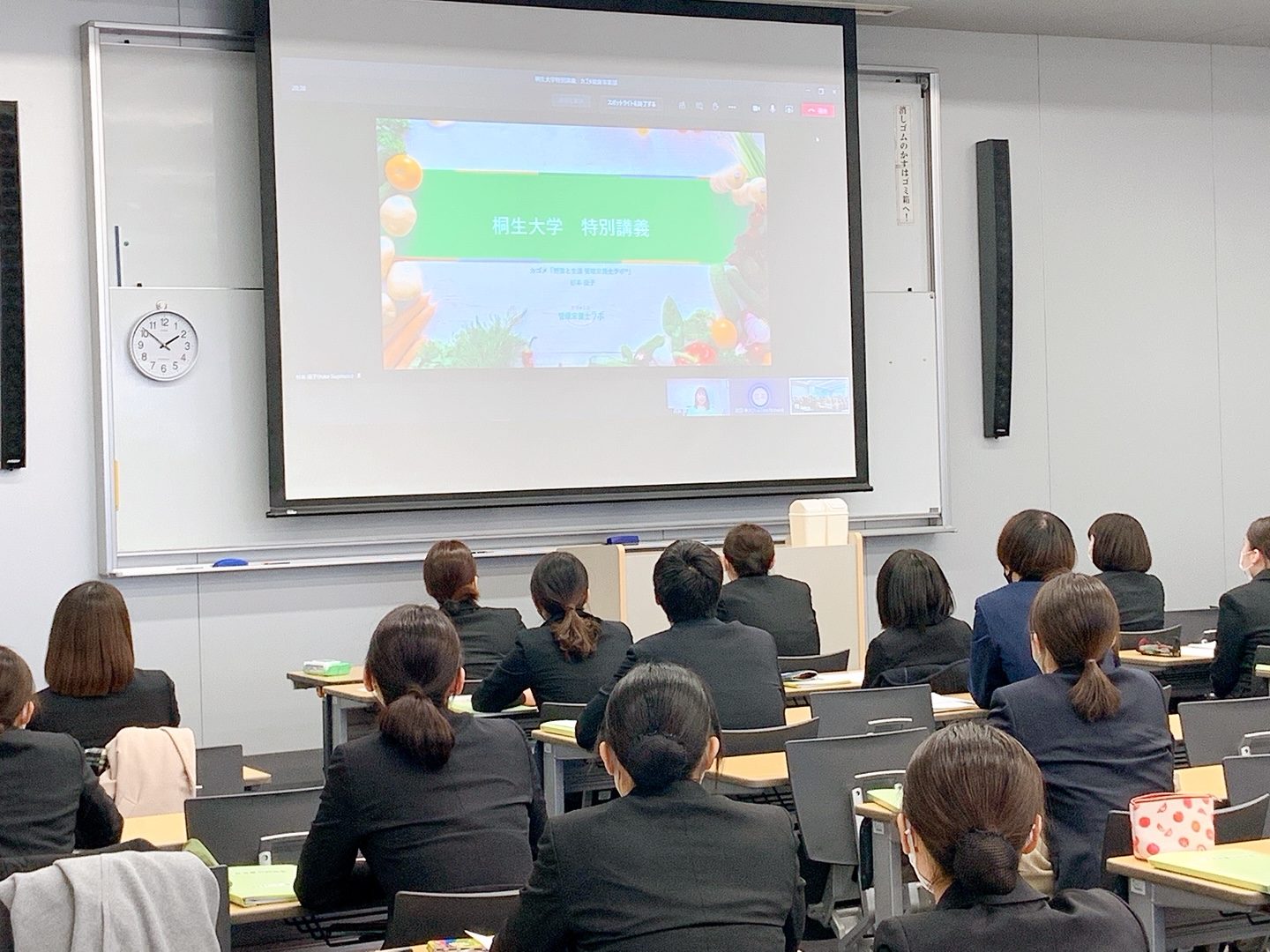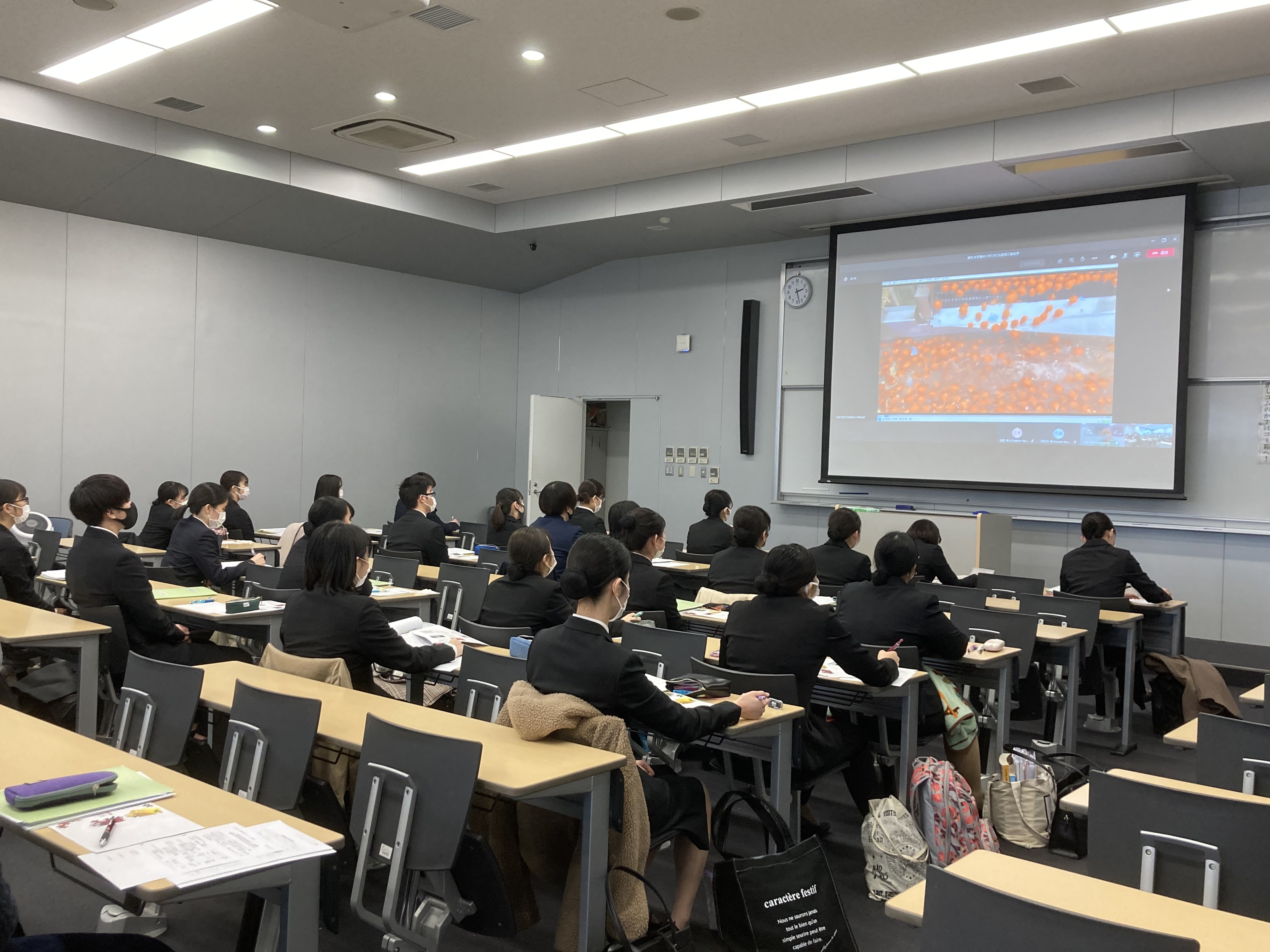 このたび食品関連企業の使命や管理栄養士の役割について理解を深めるため、カゴメ株式会社那須工場・東京本社様とオンラインで繋ぎ、遠隔授業を行いました。
