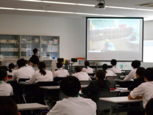 続いて、定点カメラで撮影した給食室の調理の様子を2000倍速で見学し、調理員さんの手際の良さに圧倒されました。