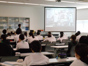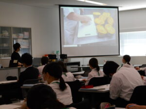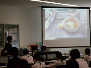 管理栄養士である卒業生の本多先輩に動画撮影および編集をお願いし、本学の齋藤先生が解説をしながら講義を進めていきました。