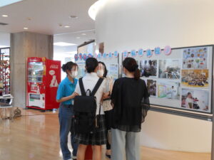 また、学科紹介のブースでは授業風景の写真や実際に使用する教科書も展示してあり、先輩が授業の感想なども交えて楽しく