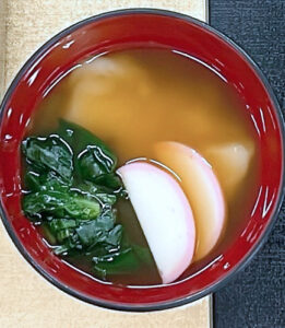 <普通のお餅の雑煮> <やわらか餅の雑煮>