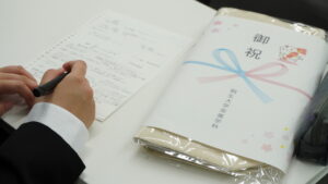 続いて学長から、学生代表の琴寄彩夏さんに記念品が授与されました。