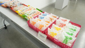 もう一つのミニ体験は「もぐもぐ、ごっくんのヒミツ」をテーマに、とろみ調整食品を使って飲み物にとろみをつける体験をしました。