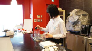 この日は、カフェ研究サークルの医療保健学部 栄養学科4年生が、国家試験の勉強で忙しいなか