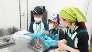 初めて魚を捌く経験をしたお子さんが多く、慣れないながらも一生懸命チャレンジして
