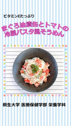 不足しがちな「ビタミンE」を多く含んだ「まぐろの油漬缶とトマトの冷製パスタ風そうめん」のレシピを紹介します。