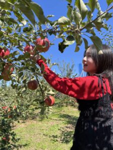 今回のりんご狩りでは、学生たちが自ら果物を収穫し、品種ごとの違いや味の特徴を実感することで、