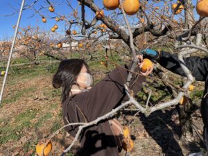 医療保健学部 栄養学科3年生の学生が、今まさに旬を迎えている柿の収穫を体験してきました。