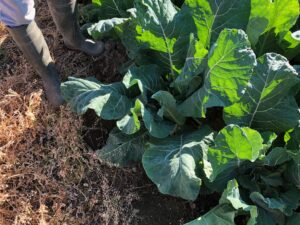 ブロッコリー、キャベツ、玉ねぎなどの露地栽培の野菜だけでなく、ハウスには春菊、きゅうり、なすなどもあり、