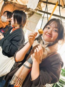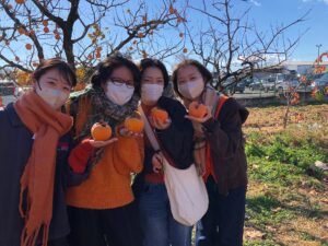 最後にご厚意で柿の食べ比べをさせていただきました。同じ柿でも甘さ、硬さ、水分量などが異なり、学生間でも好みが分かれました。