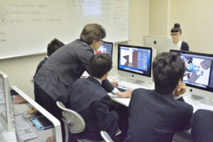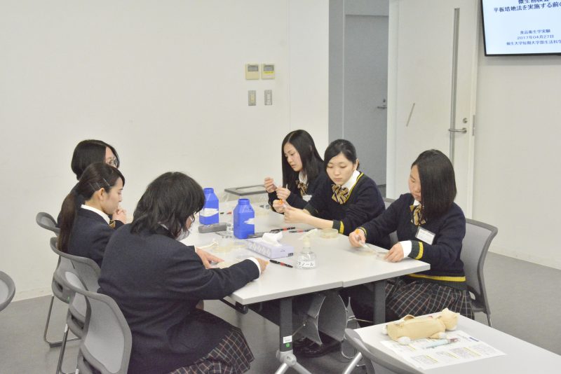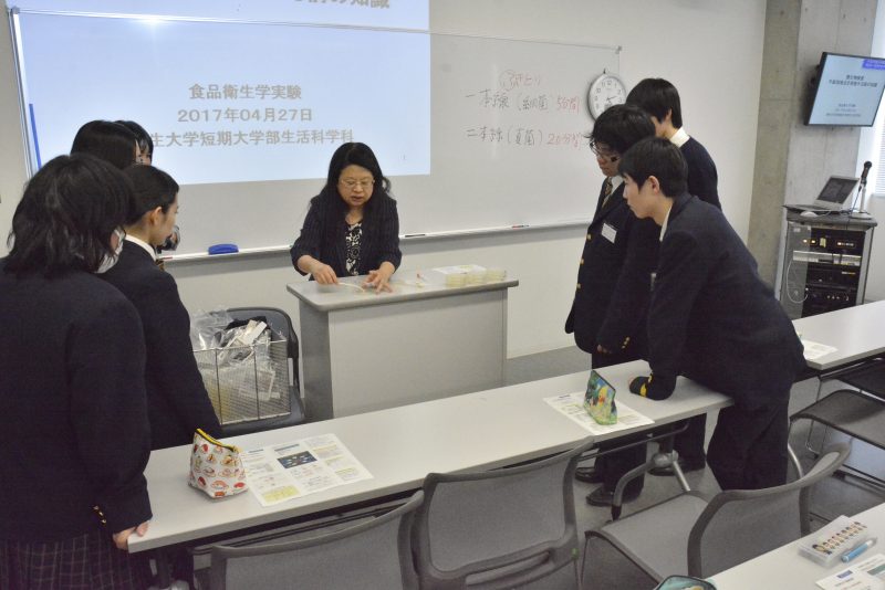 今回の大学見学では、授業体験を中心に行いました。食品衛生学の先生の講義や調理実習、CGデザインの先生による講義などを体験していただきました。
