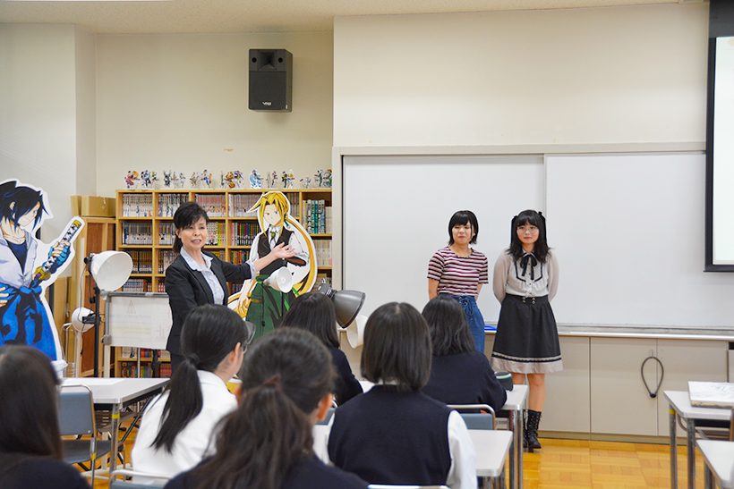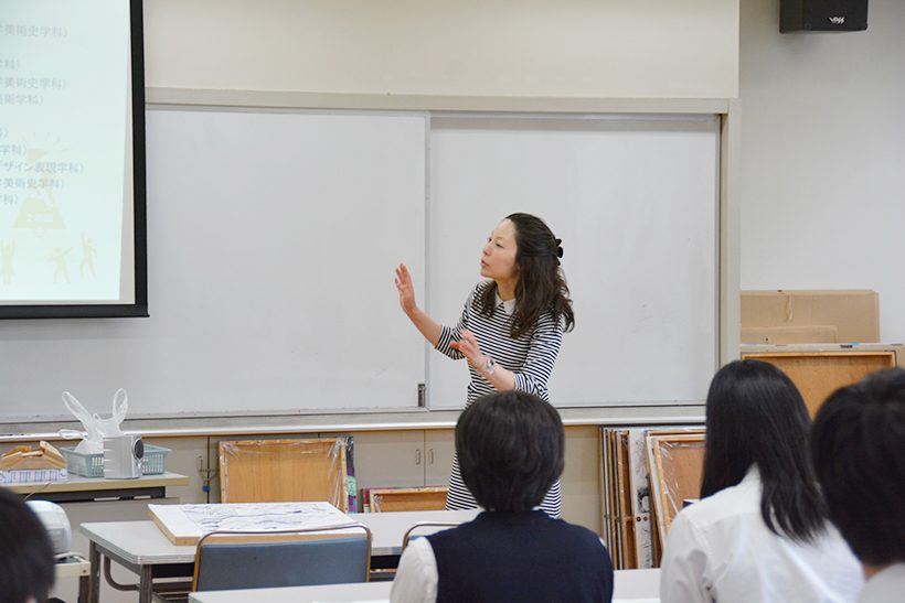 今回の大学見学では、大学の概要説明の後、医療保健学部 看護学科と短期大学部 アート・デザイン学科に分かれて、学科説明と模擬講義を体験してもらいました。