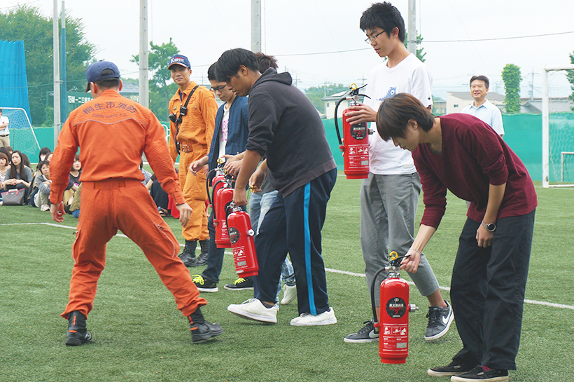 桐生みどり消防署の方の講評後、消化器の使い方を教わり初期消火訓練をしました。