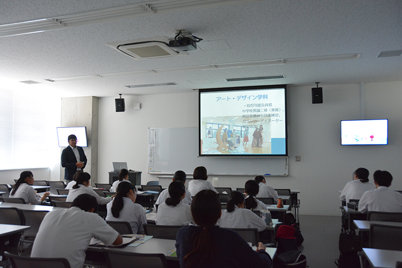 大学生にまじってレストランでお昼を食べた後、大学紹介、入試概要などの説明を聞いてもらいました。