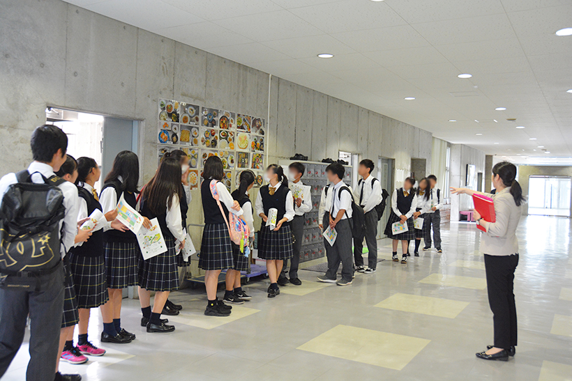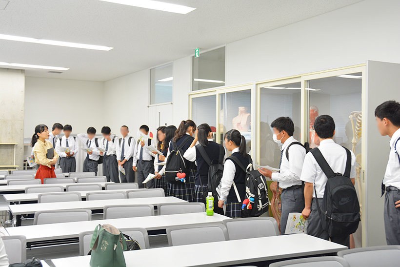 7月5日(金)、新田暁高校の1年生が大学見学に来ました。大学・短大説明の後、施設見学、学科紹介、授業体験をしてもらいました。