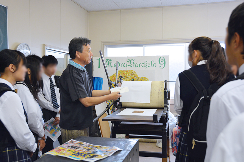 版画技法の授業を見学しました。