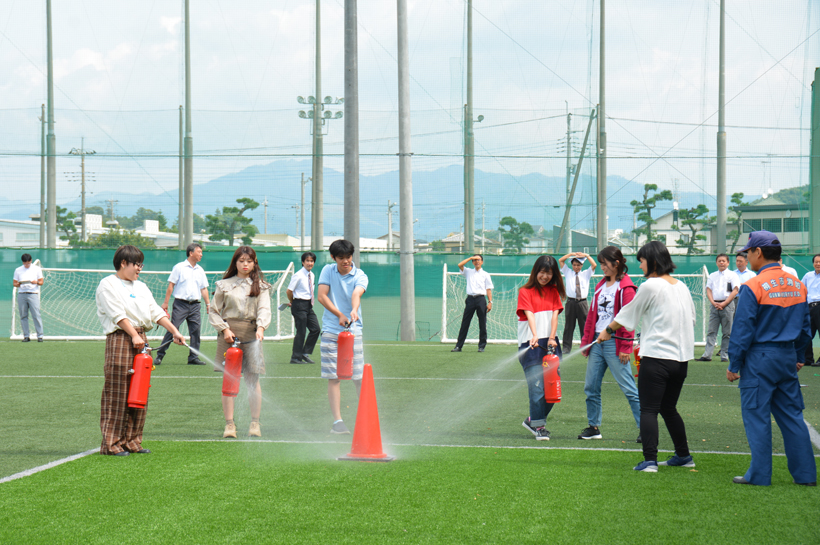 桐生みどり消防署の方の講評後、消化器の使い方を教わり初期消火訓練をしました。