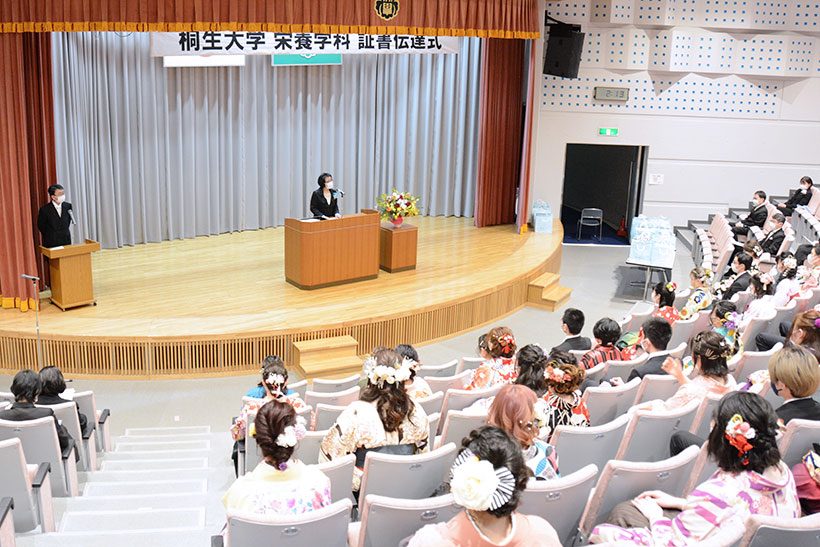 医療保健学部 看護学科72名、医療保健学部 栄養学科58名、生活科学科34名、短期大学部 アート・デザイン学科53名の卒業生へ学位記が授与され、別科助産専攻17名の修了生へ修了証書が授与されました。