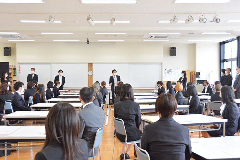 新型コロナウイルス感染症対策として、保護者の方々の入場は見合わせていただき、新入生のみで入学式を執り行い、式典の様子をライブ配信しました。