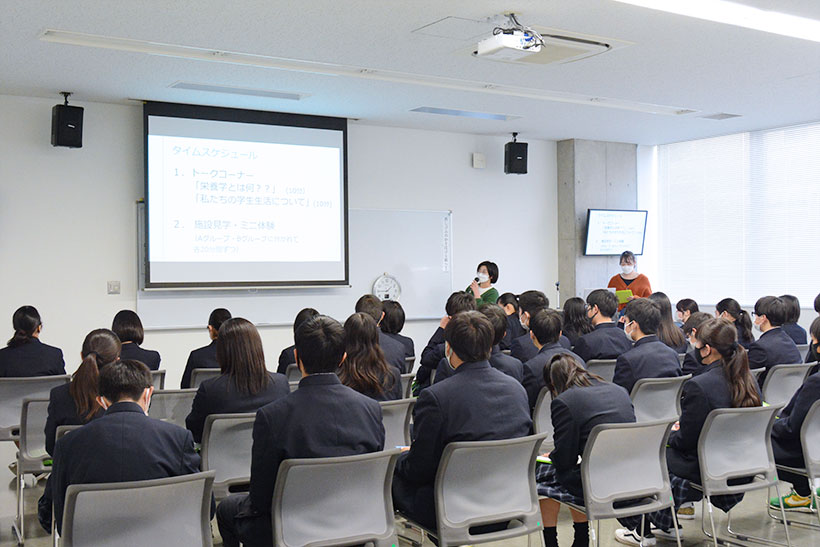 12月16日(木)、富岡実業高校の2年生が大学の医療保健学部 栄養学科の見学に来てくれました。