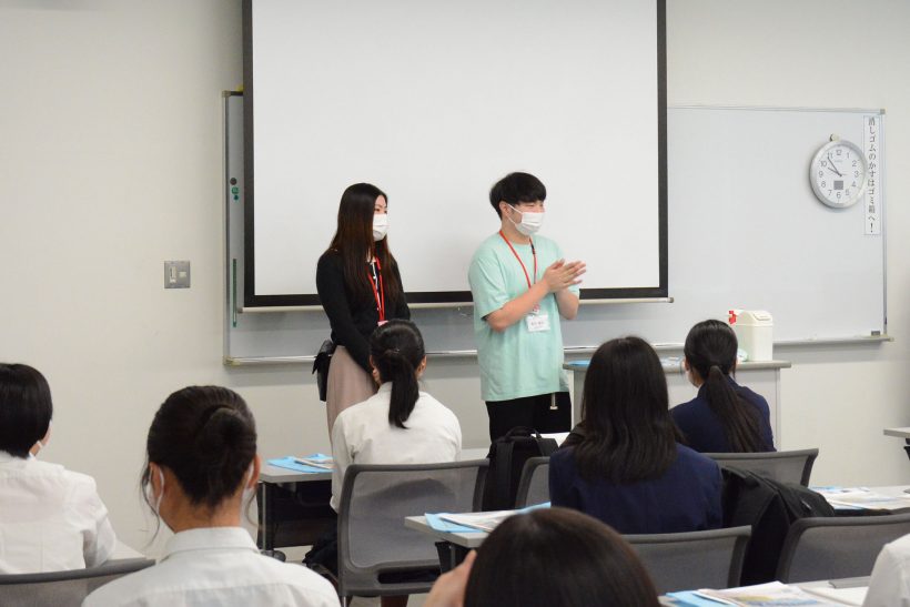 当日は学生スタッフによるフリートークからはじまり、医療保健学部 看護学科の教員による学科紹介、ストレスをテーマとした模擬授業を実施。