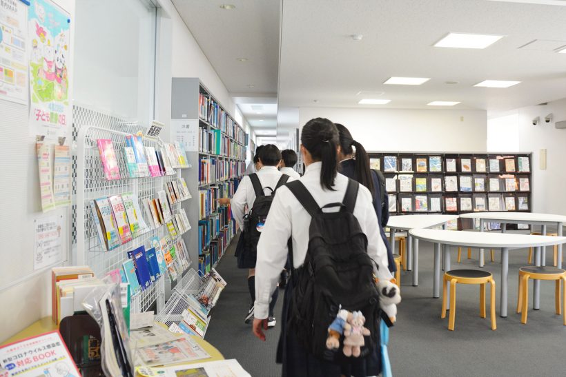 学校見学会の最後には施設見学ということで、売店、レストラン、図書館、看護棟を高校生にご紹介。