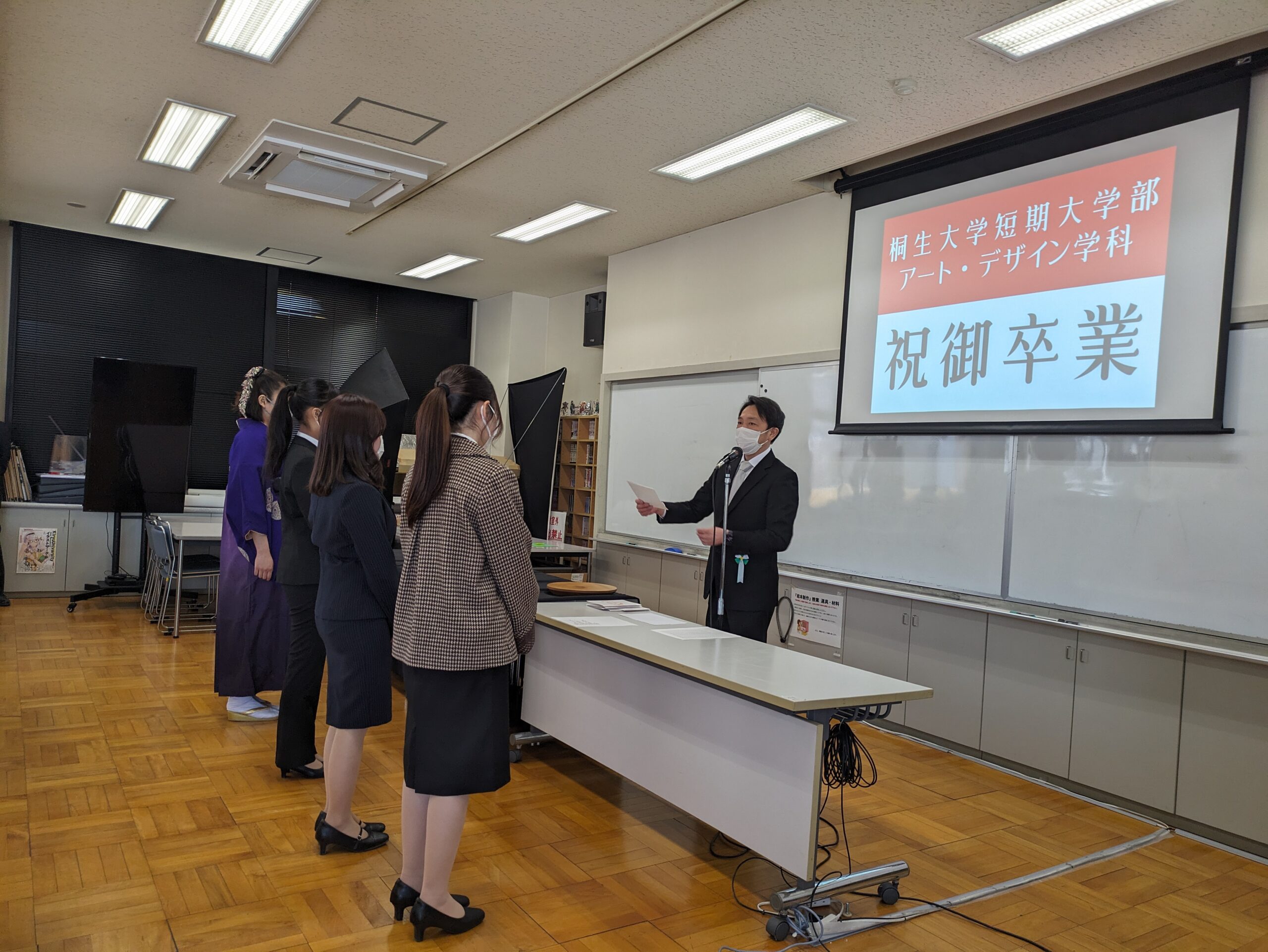快晴無風の中、学位授与式が執り行われ、無事2年生全員が卒業となりました...