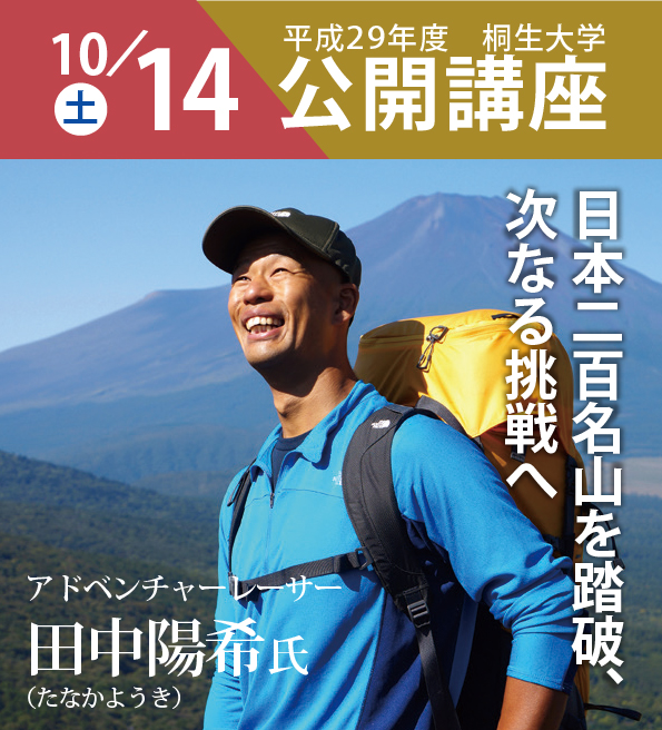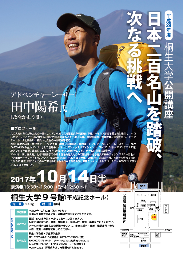 今年度はアドベンチャーレーサーの田中陽希氏を講師としてお招きします。