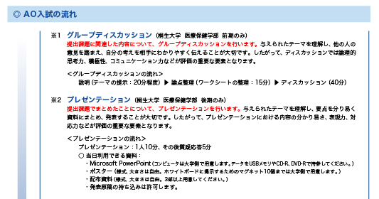 P.5「AO入試の流れ」に2カ所追記箇所があります。下記画像の赤文字部分が追記箇所となります。