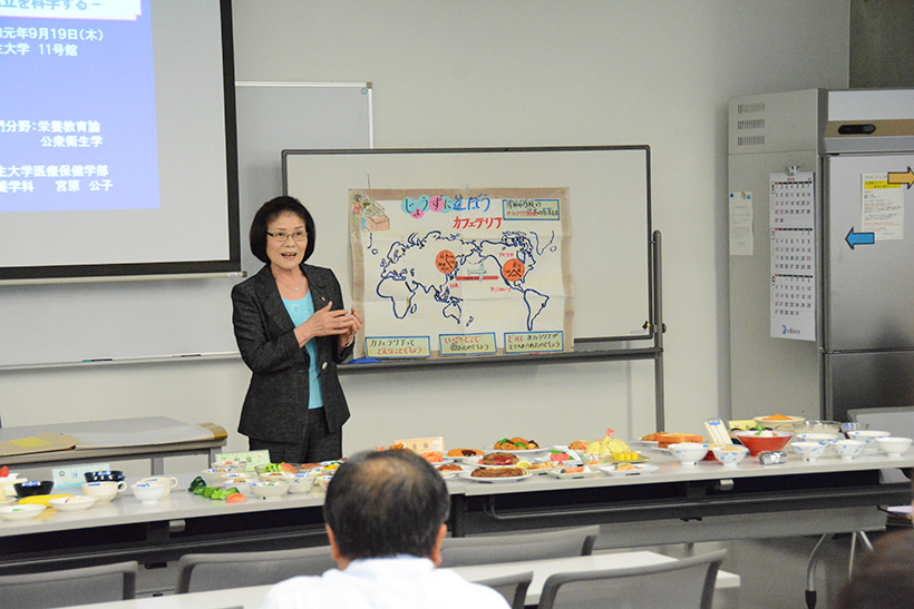 最後に、医療保健学部 栄養学科学科長よりカフェテリアメニューを振り返る講義がありました。