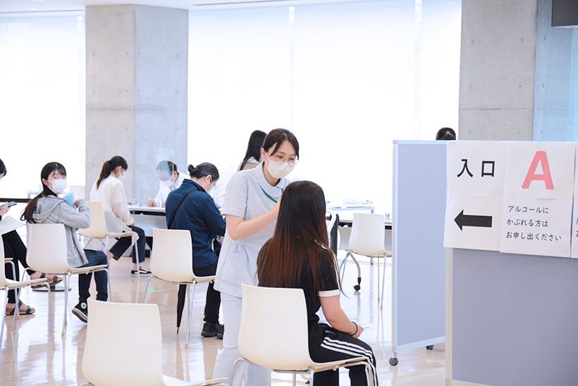 6月29日(火)のリハーサルを経て、7月1日(木)、学生や教職員を対象とする新型コロナワクチンの職域集団接種を実施しました。