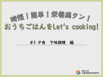 の3本の動画を視聴していただくことで、健康的なおうちごはんを簡単に実践できるコツをお伝えします。