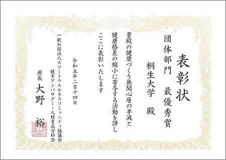 スマートウェルネスコミュニティ協議会から表彰を受けました。