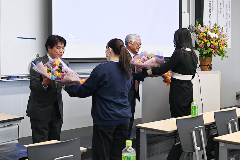 代表学生からの花束贈呈