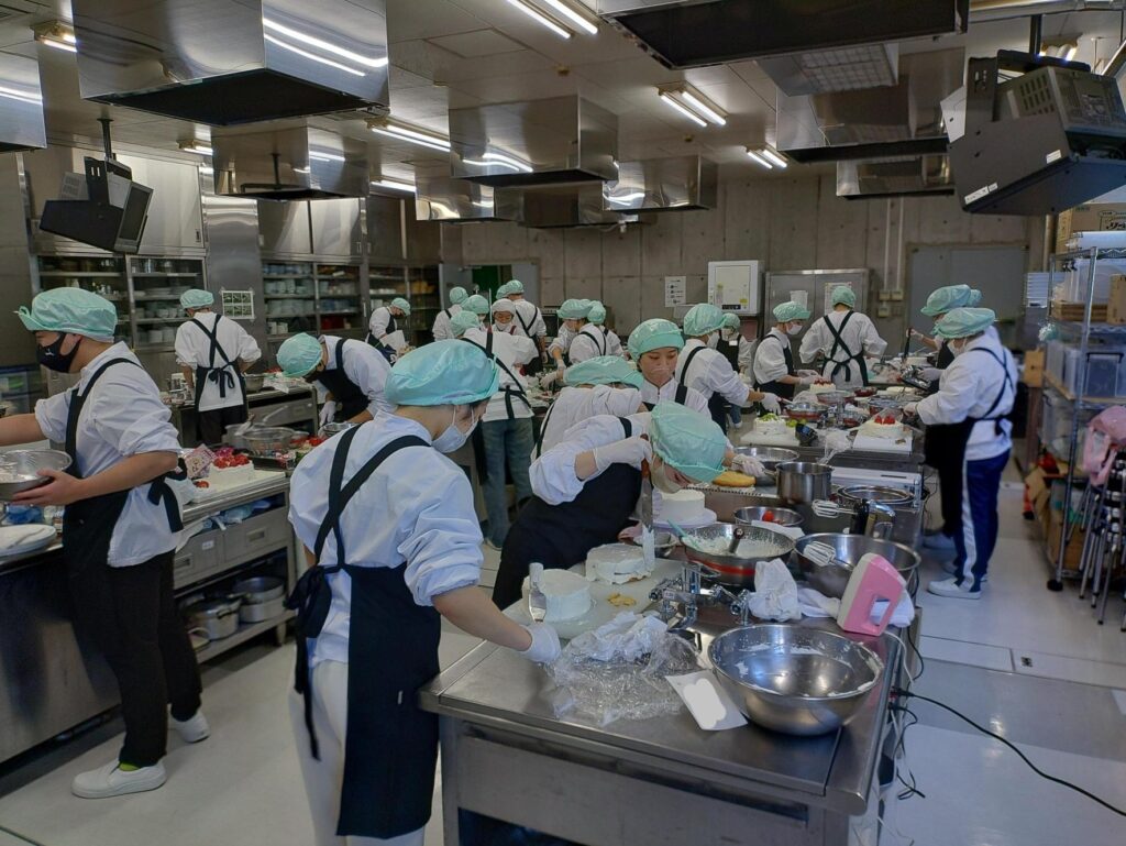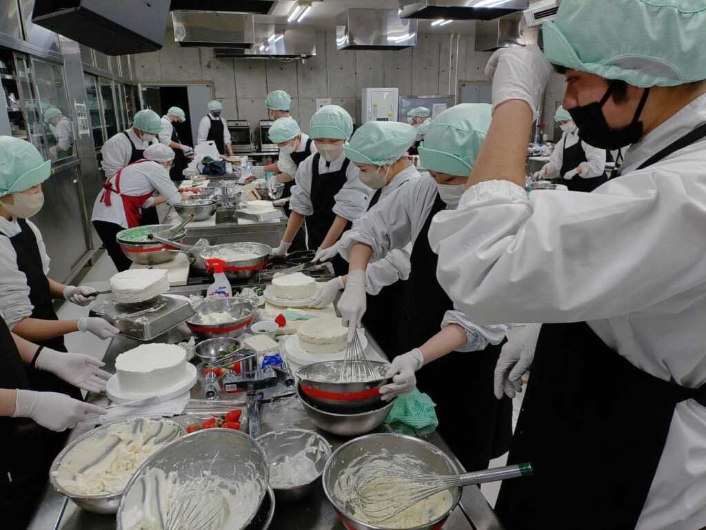 学生たちは真剣な眼差しでデコレーションケーキを作成しました。