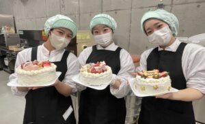 本日は応用調理実習Ⅱで行いましたデコレーションケーキ作りをご紹介いたします。