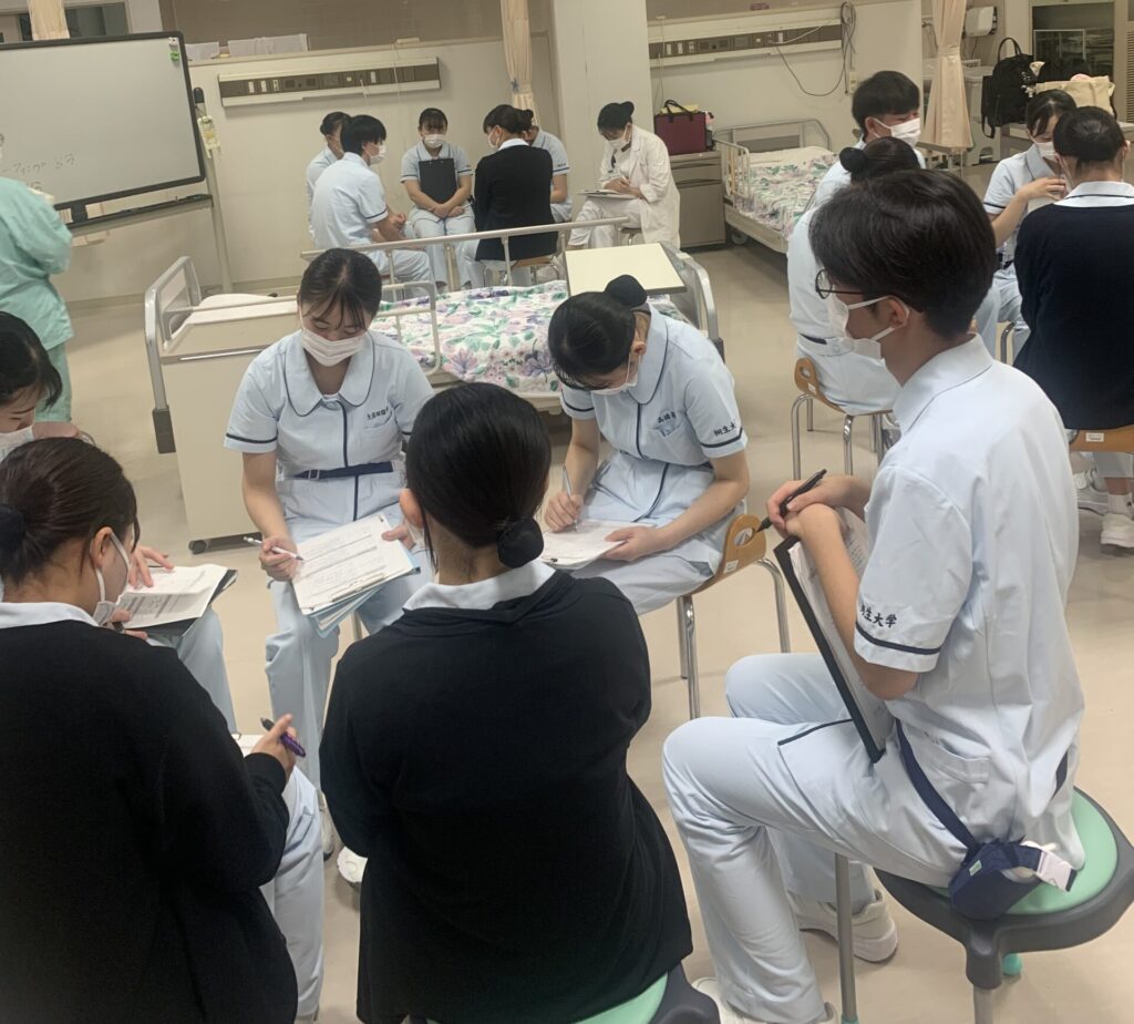 看護者の立場から患者さんの健康上の問題を把握し、どのような援助が必要なのかを考えながら演習に臨んでいます。