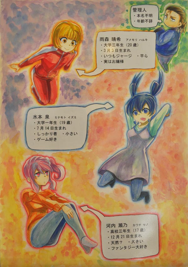 山吹荘というアパートの管理人と、そこの住人である3人の女の子の日常を描いた4コマ漫画です。管理人さんが美少女に囲まれているハーレム状態にも関わらずドタバタコメディでラブのないお話ですが、読者に愛してもらえるキャラクター達を目指して描きました。
