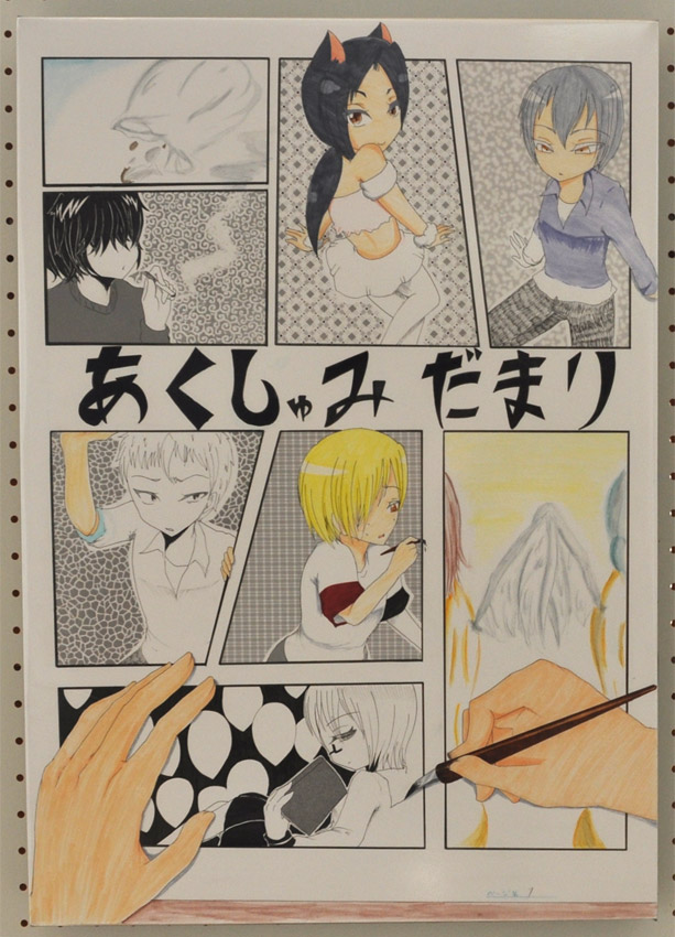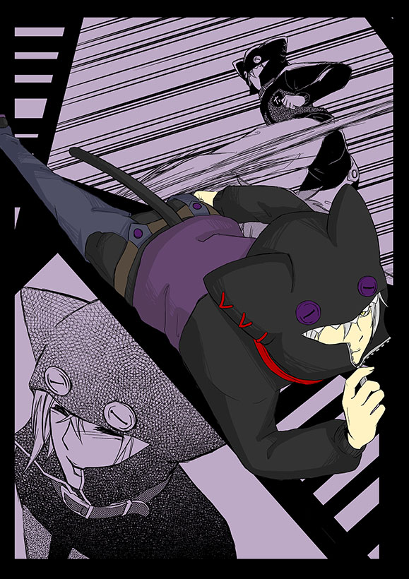 自分が一番好きなダークファンタジー系のマンガを描きました。あえて話の流れがわからないよう、登場人物の一部に「?」な行動をとってもらいました。読者それぞれの解釈でぜひお楽しみください!